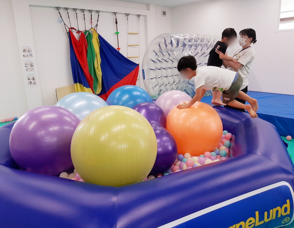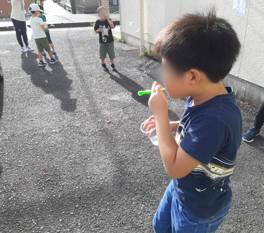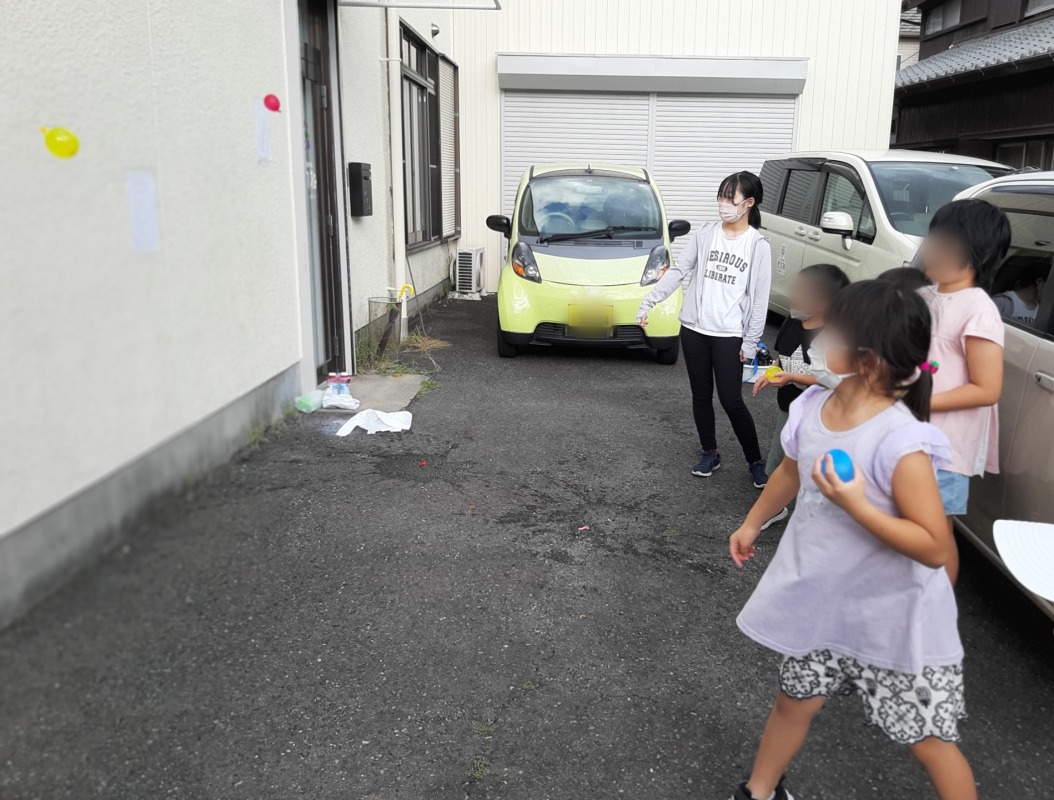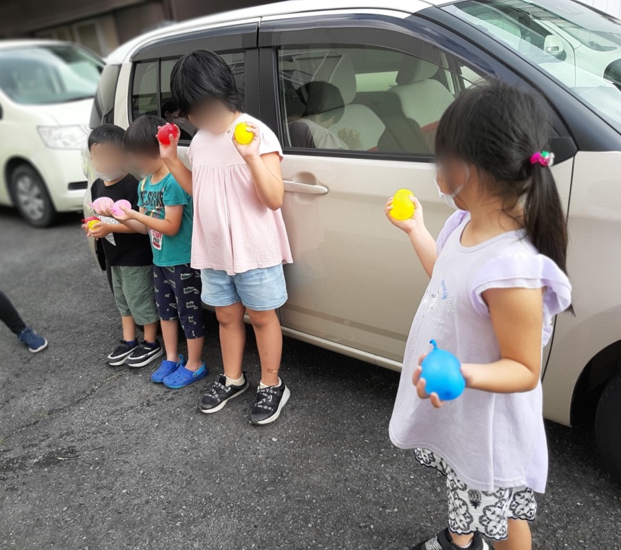 今日は人数が少なかったこともあり、駐車場でシャボン玉や水風船であそびました。