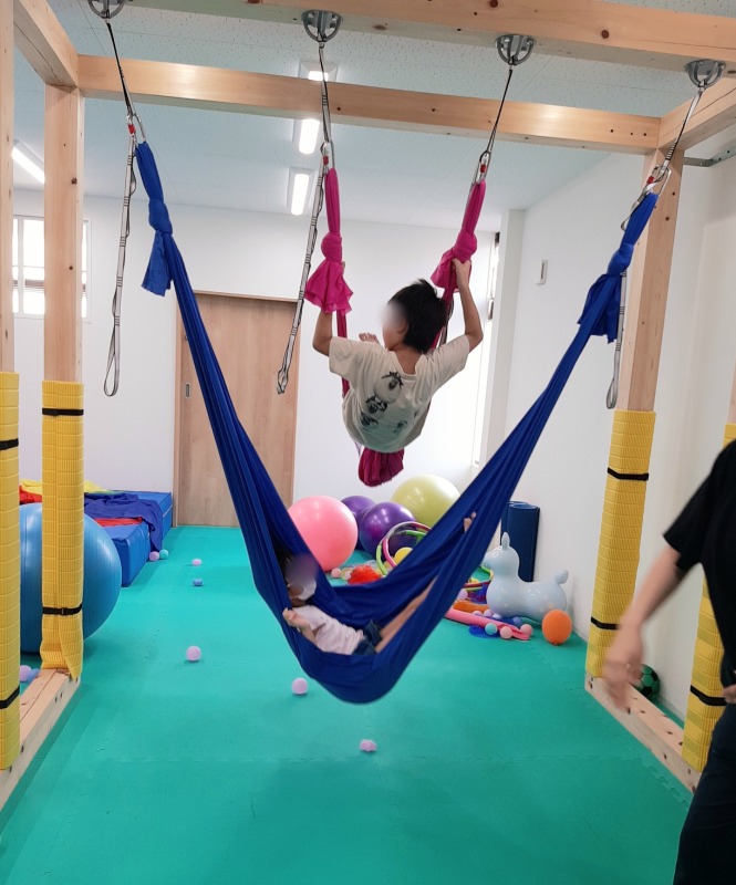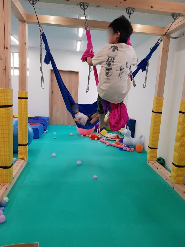 2022.9.14 きのね 2022/9/14 日々のこと 大変!ぶつかるっっ!!…と思いきや、大丈夫でした!ハンモックを工夫して付けて、いつもとは違った楽しみ方をしました。友だちとのこんな関わり方も楽しいね。