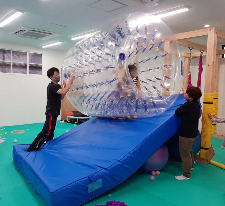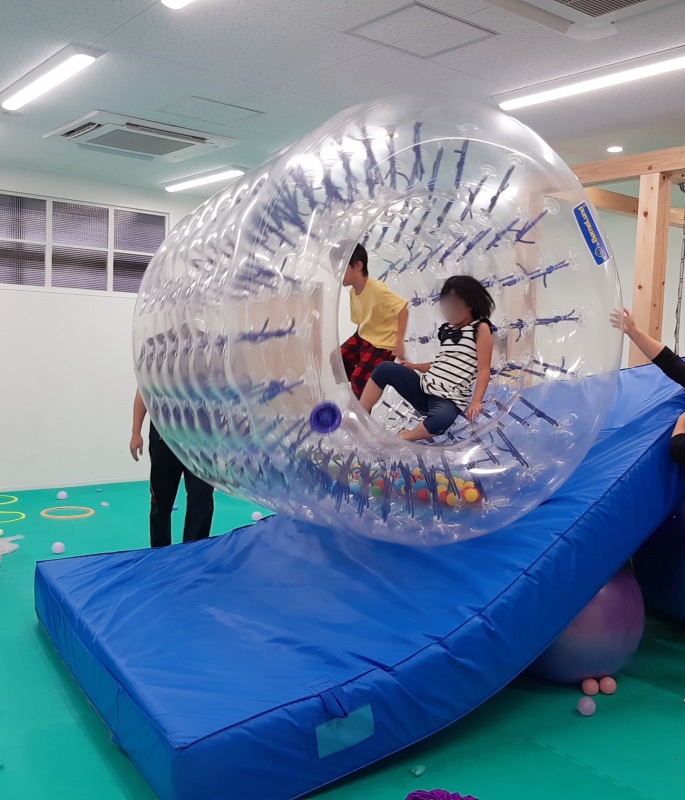 2022.10.5 ironoha 2022/10/5 日々のこと イロノハでは、こんなダイナミックなあそびも楽しんじゃいます!高い位置からサイバーホイールを転がします!回転しながら適度な加速度もかかり、マットから落ちる衝撃で圧刺激も入ります。「ジェットコースターみたい!」と喜ぶ子どもたち。友だちと一緒に、自由に楽しくあそびながら、知らず知らずのうちに、必要な感覚刺激をたくさん入れていくことで発達を促していきます。