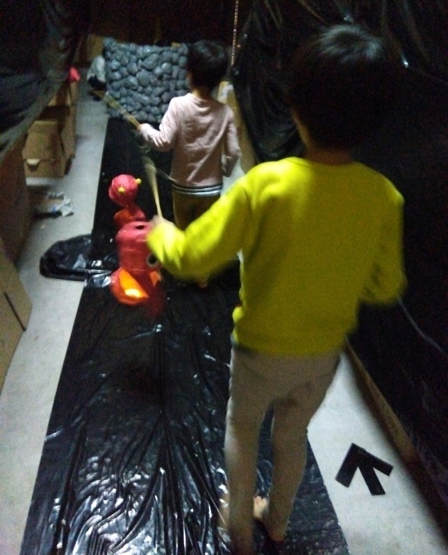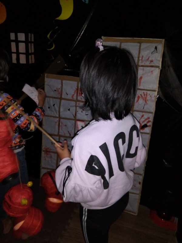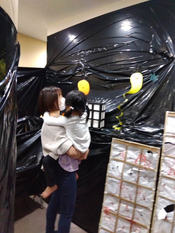 手に持ったお札を貼りに、お化け屋敷の中へ…