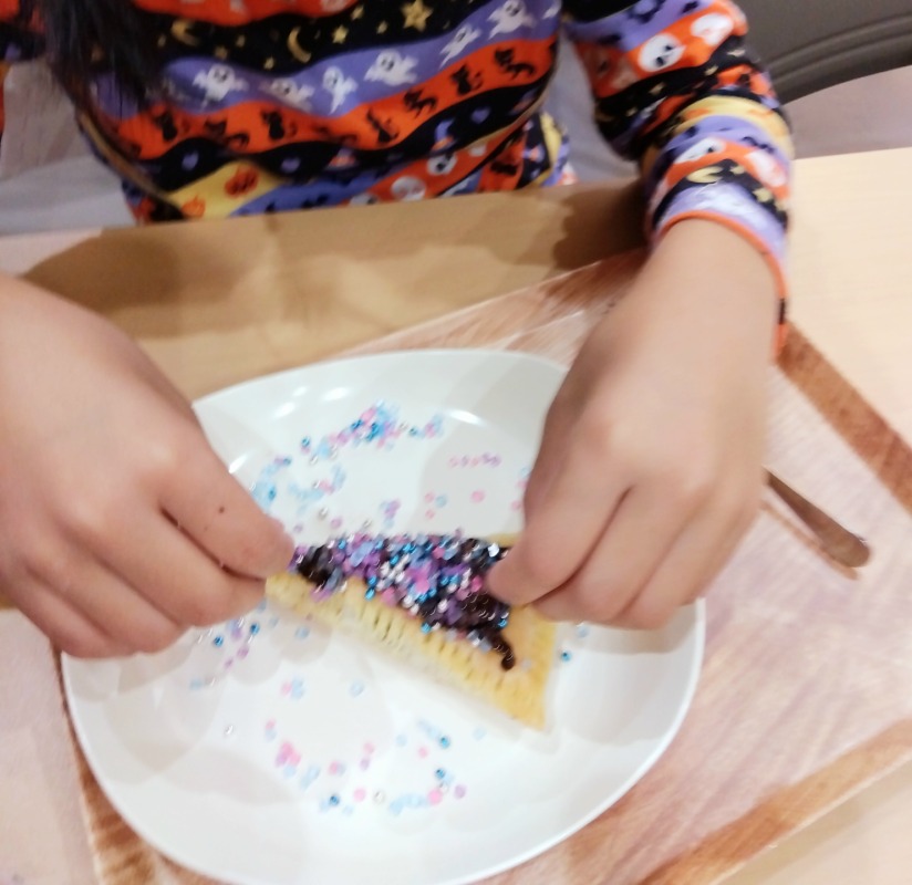 お化け屋敷のあとは、カボチャのパイに飾り付け!