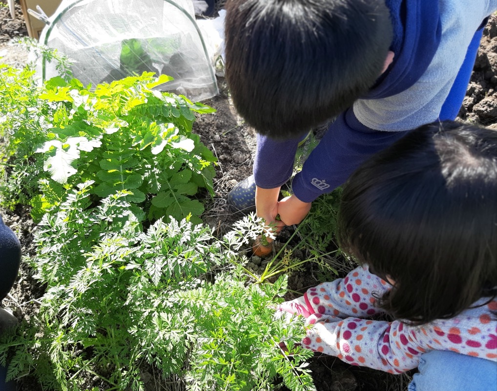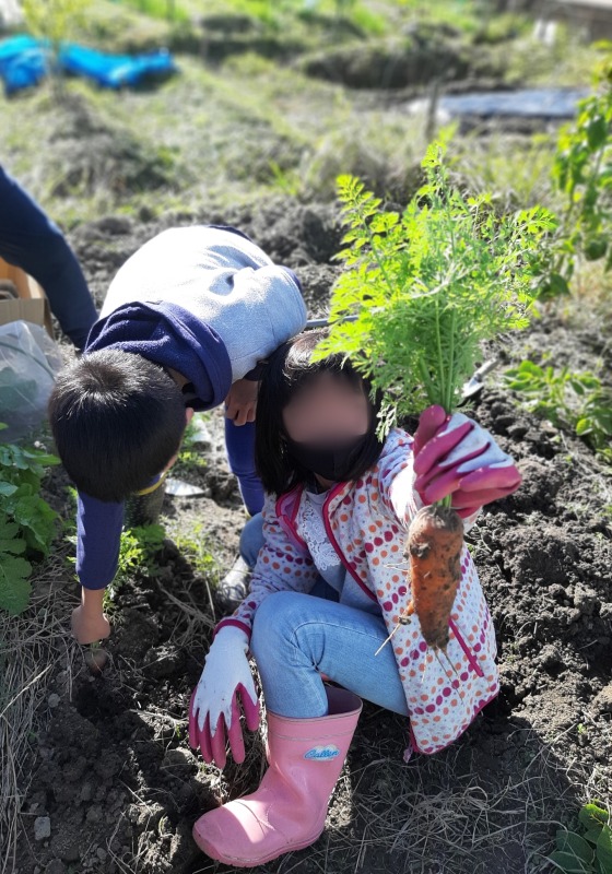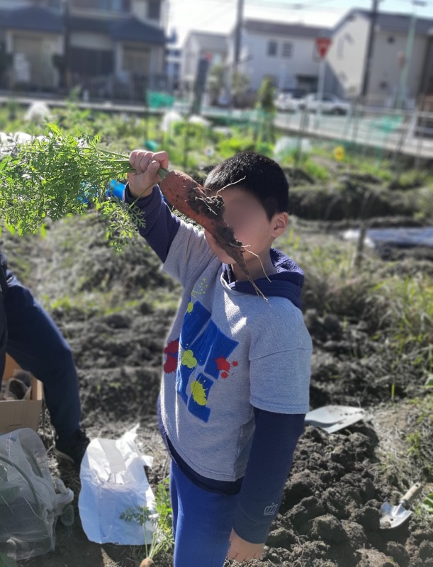 葉っぱのついたニンジンを見れるのも、自分たちで育てた特権です。