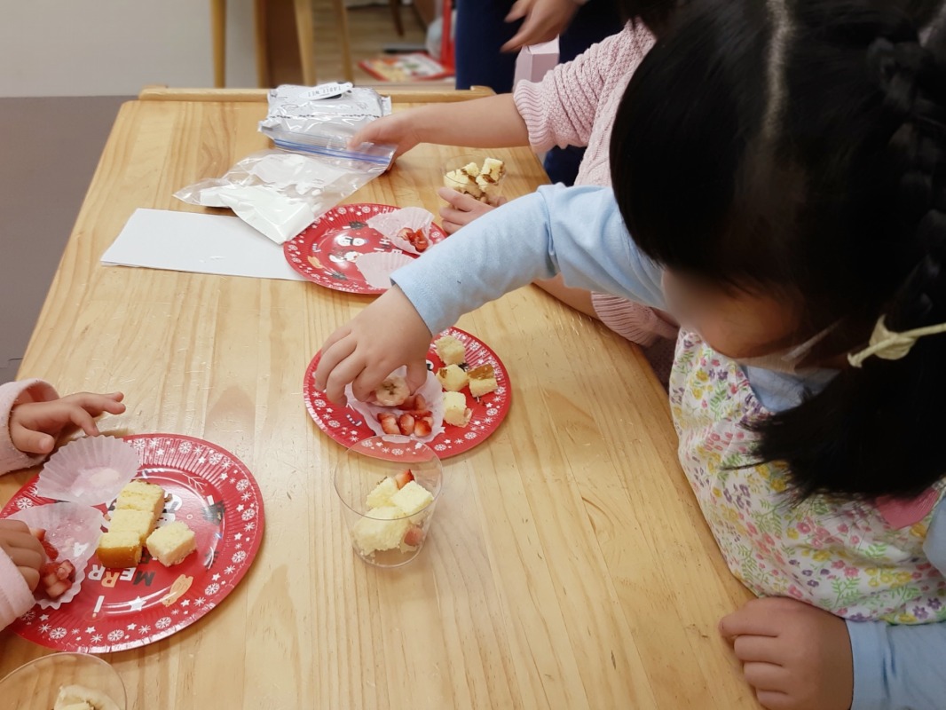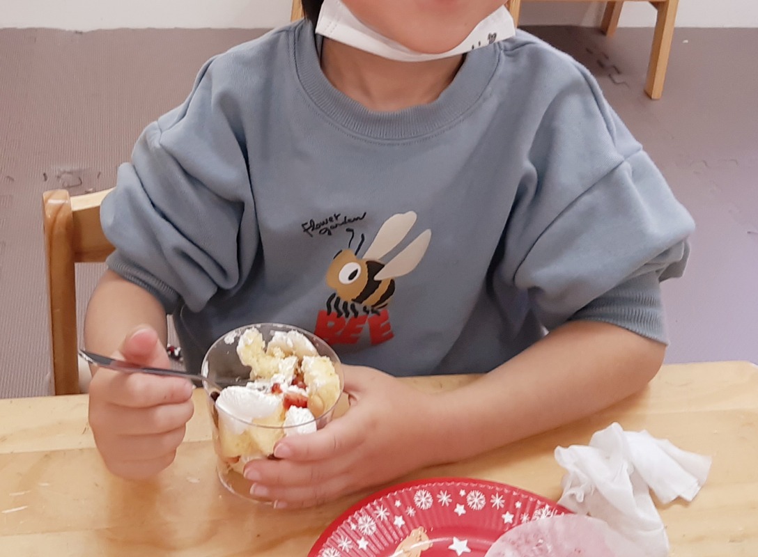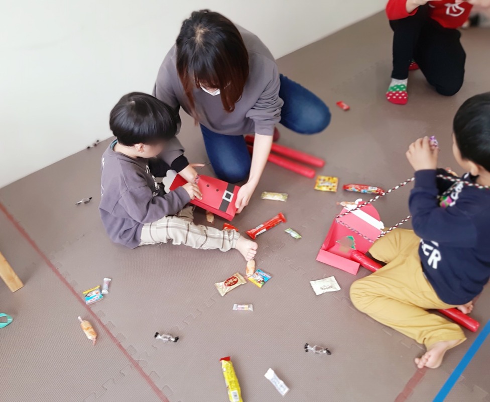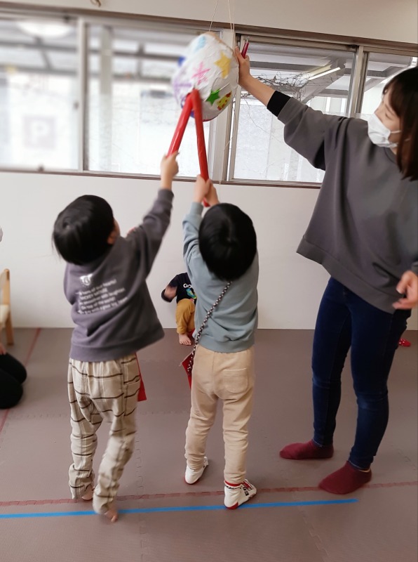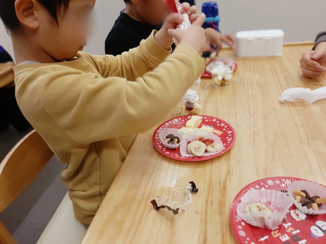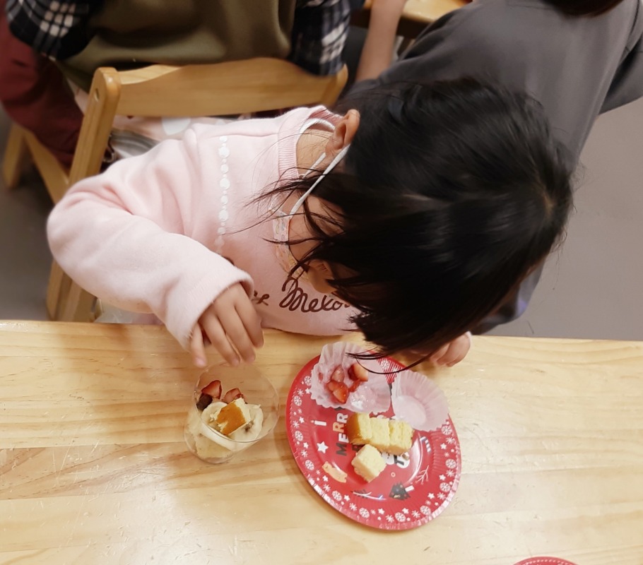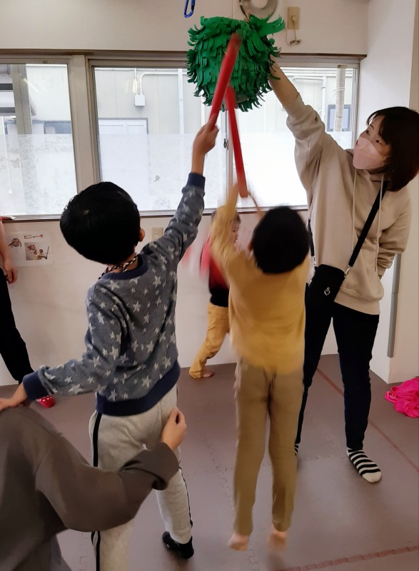 2022.12.19 クリスマス会 日々のこと 先週楽土曜日のクリスマス会の様子です。毎年恒例、ピニャータは大盛り上がり!かわいいケーキを自分たちで作りましたよ!サンタさんからプレゼントをもらい、大満足なきのねの子どもたちです。