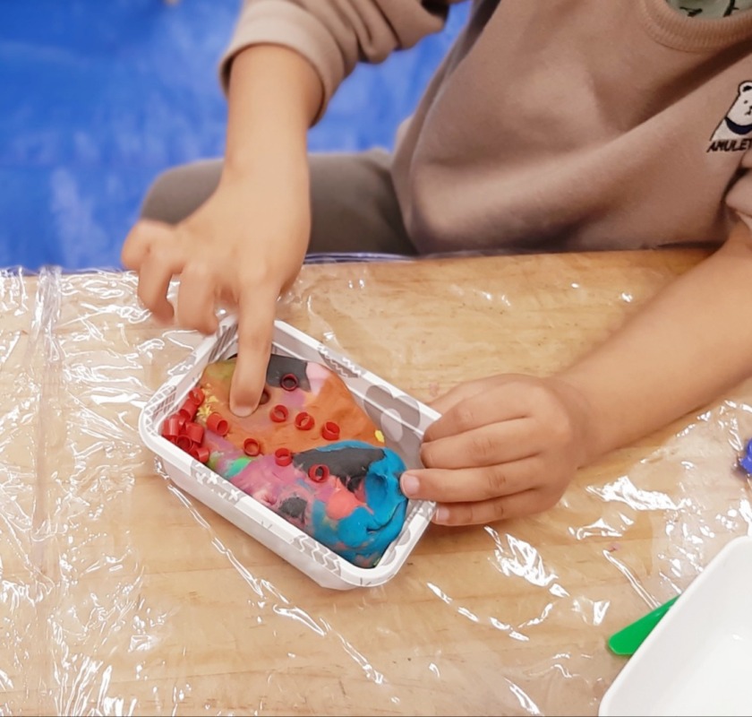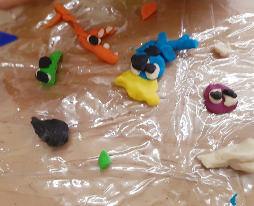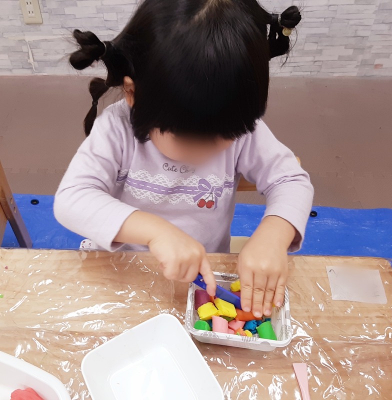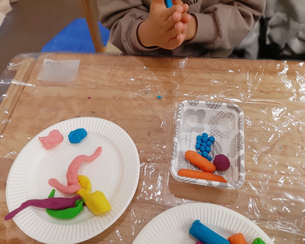 2023.1.9 きのね カラフル粘土あそび 日々のこと カラフルな粘土で、イメージを膨らませ、好きな物をいっぱい作りました!みんなすごい集中力!職人さんがいっぱいいました!帰りの会で自分の作品を発表しました。個性豊かな作品がたくさんできあがりましたよ。