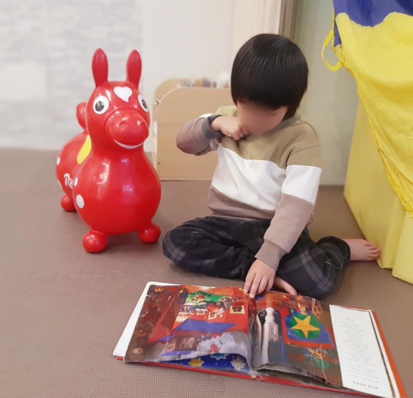 2023.1.16 きのね ロディといっしょ 日々のこと 大好きな、赤いロディと一緒に絵本。ロディと一緒だと、安心できるね。安心できる環境の中で、おもいっきり身体を動かしてあそぶきのねの子どもたちです。