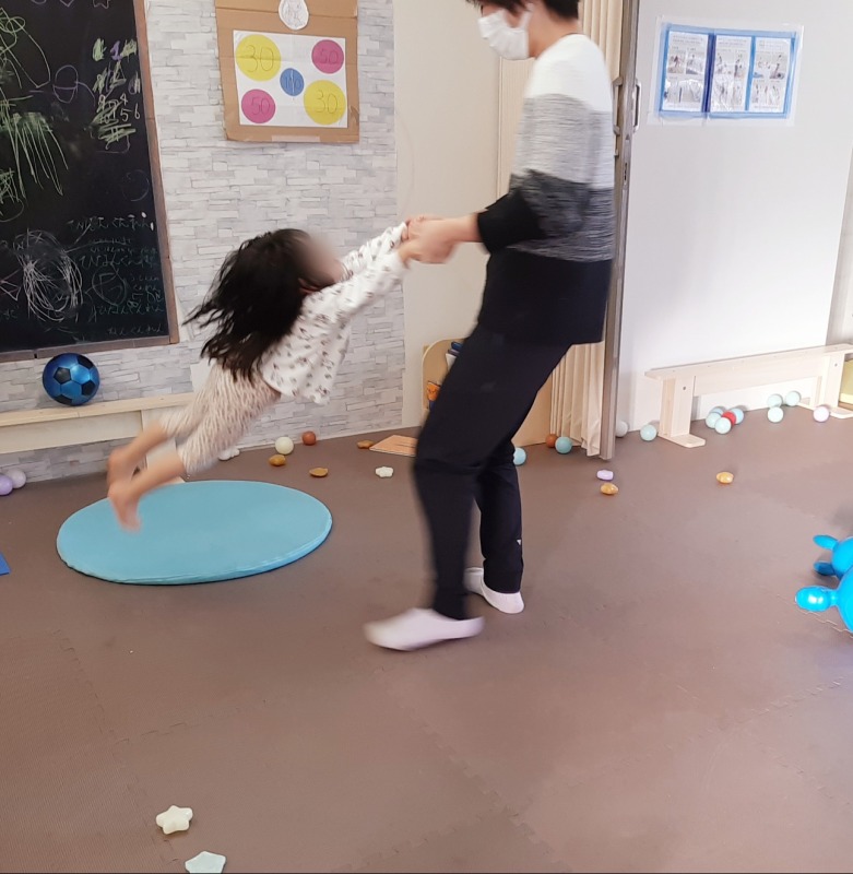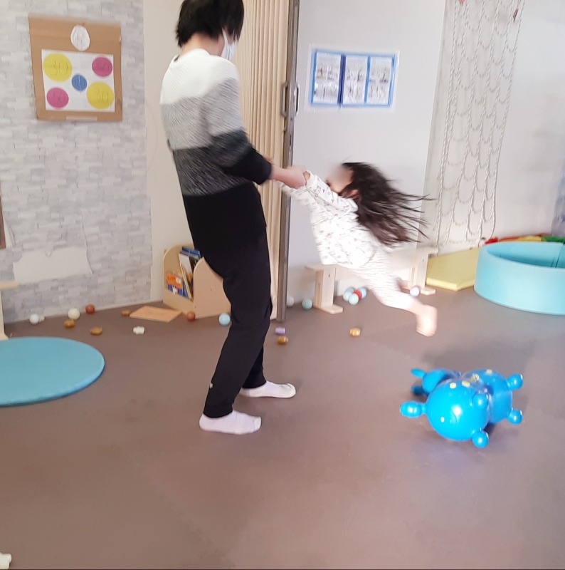 きのねでは、スタッフや友だちとたくさん触れあい、「楽しい!」「もう一回!」が引き出せるよう、工夫して環境設定を行っています。