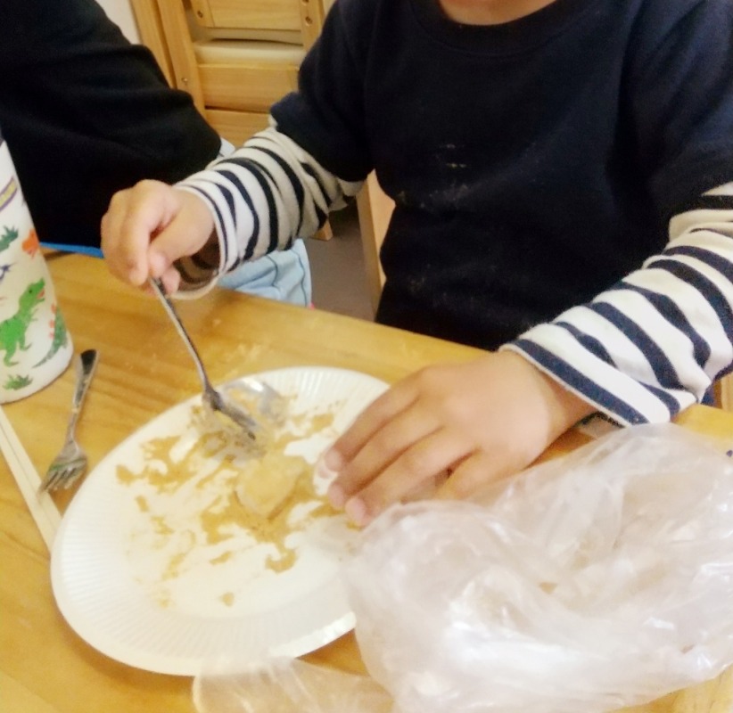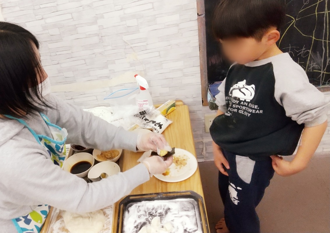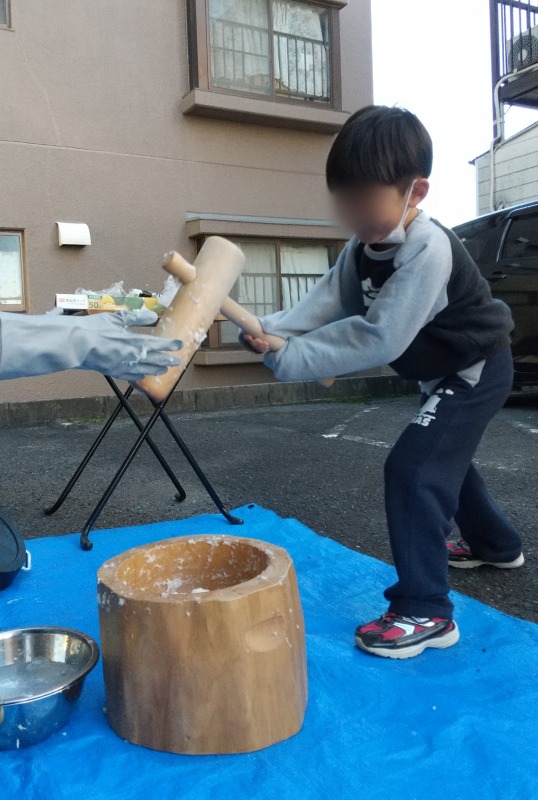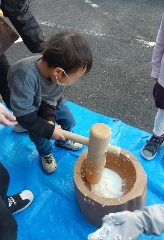 2023.1.23 きのね 餅つき 日々のこと きのねの土曜日のイベントの様子です。ミニサイズの杵と臼で餅つきをしました!みんなで協力して、とてもおいしそうなお餅かできあがりました!自分で丸めます。好きな味を選んで…いただきまーす!つきたてのお餅は柔らかくておいしいね!きのねでは、子どもたちがたくさんの経験を積んでいけるよう、今後も様々なイベントを企画していきます。