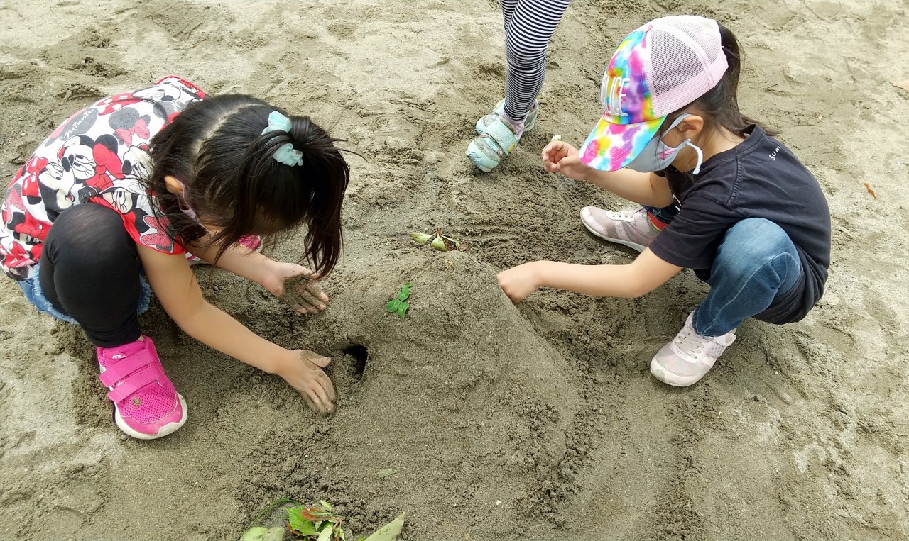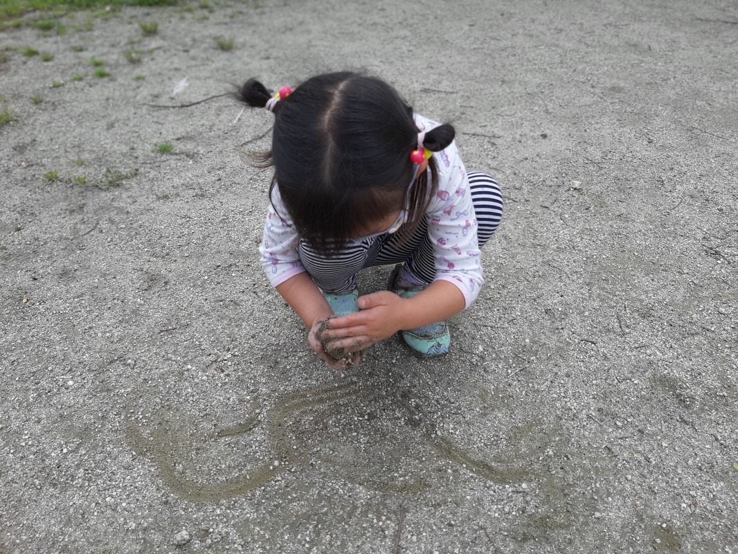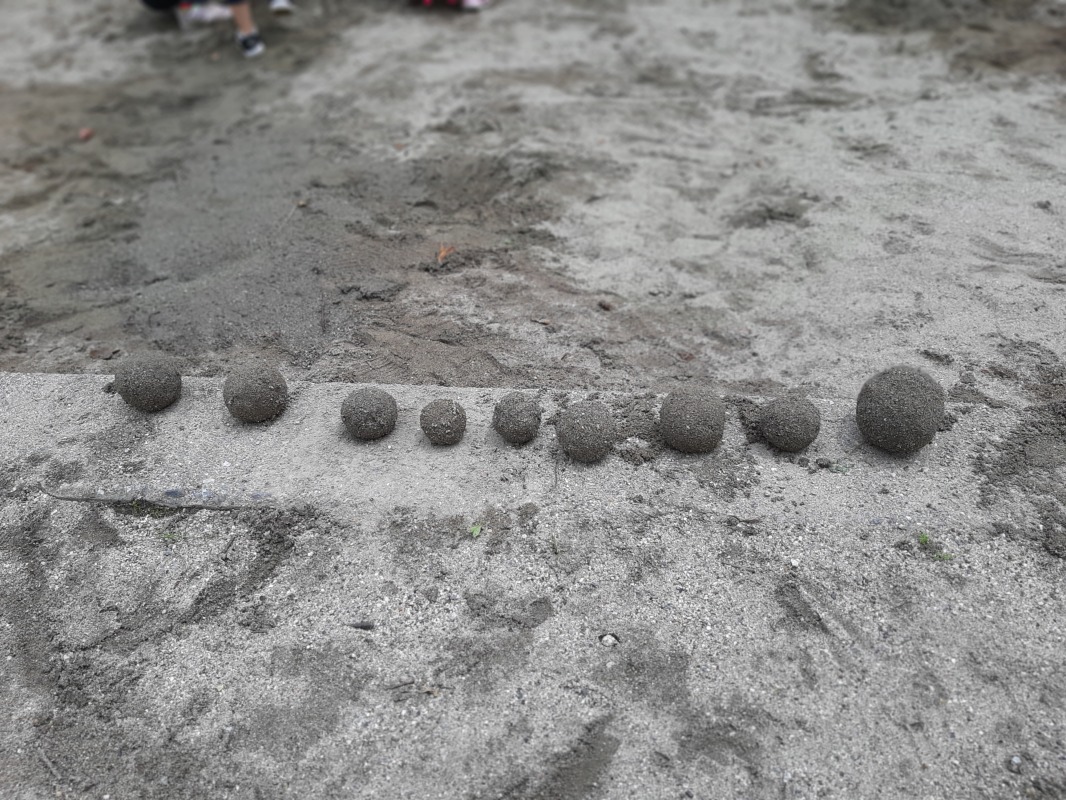 2021.5.8 どろだんご 日々のこと どろだんご作り。どろの感触楽しんで。大きいおだんご作れるかな?お山を協力して作ってトンネルが開通しました。たくさんのおだんごが並びました。ひとつひとつ、みんな違うね。きのねの子どもたちと一緒で、個性豊かなおだんごたちです。