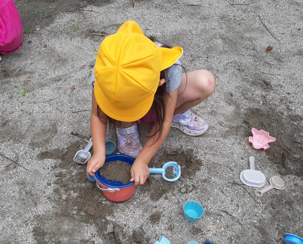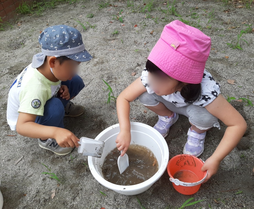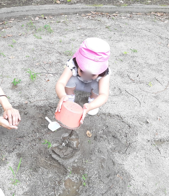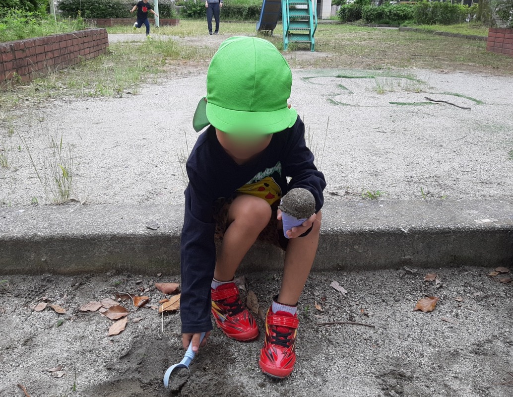 どろを触るのがちょっと苦手だったけど、なるべく触らないよう道具を使って、とっても美味しそうなアイスができた子。
