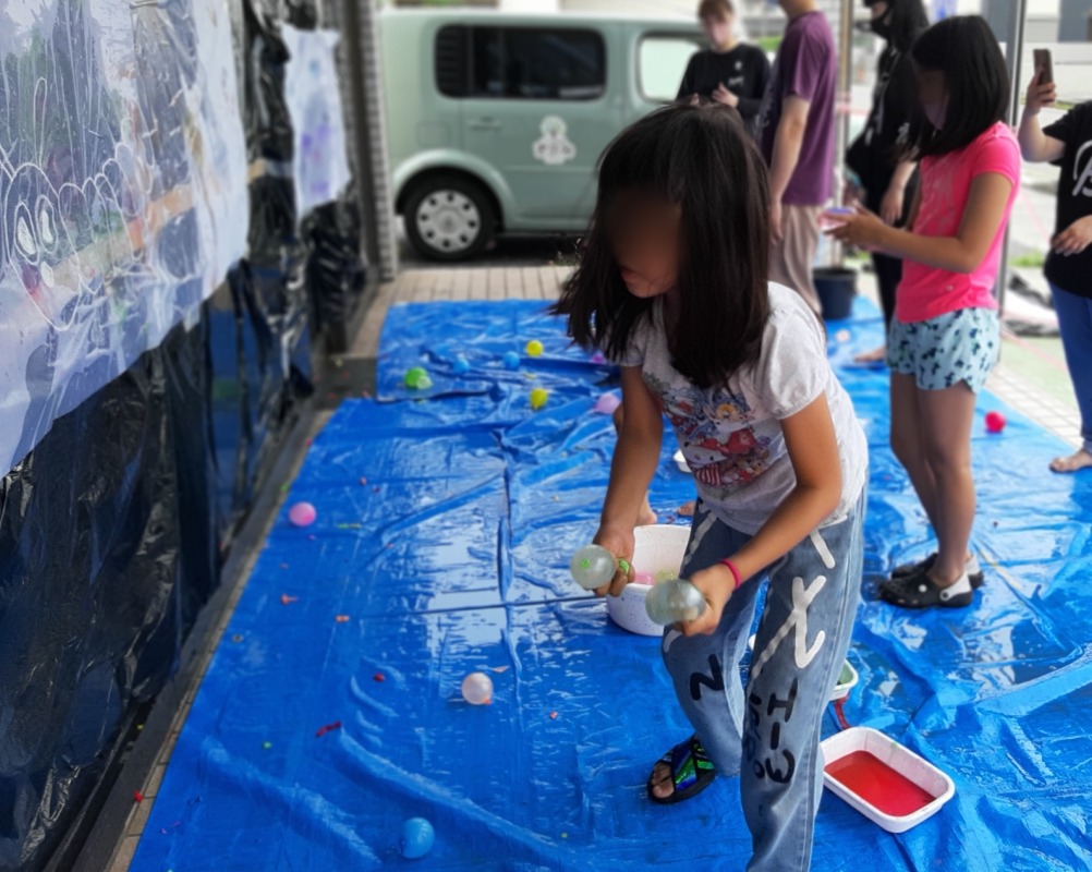水風船の感触を楽しみながら、思いきり壁に風船をぶつけて、ストレス発散!