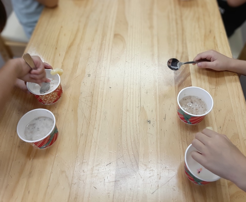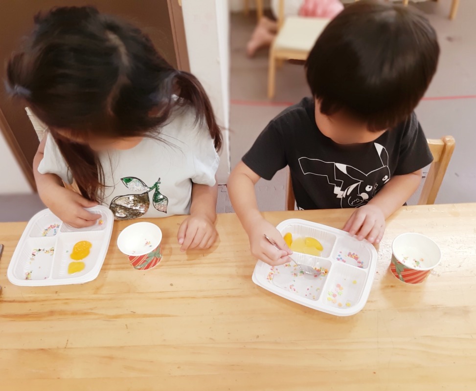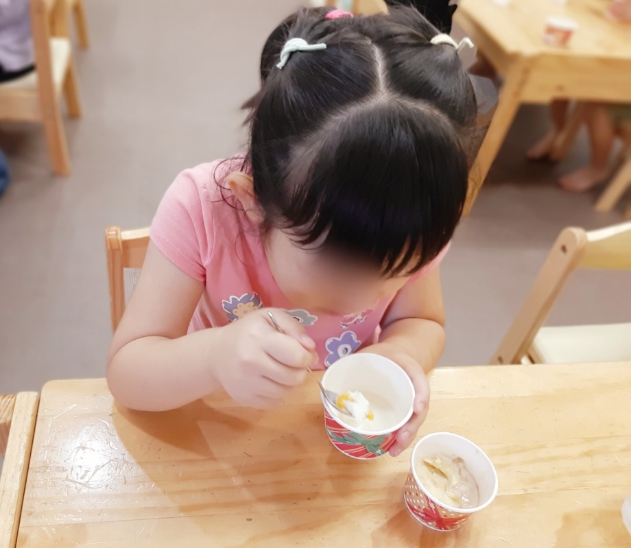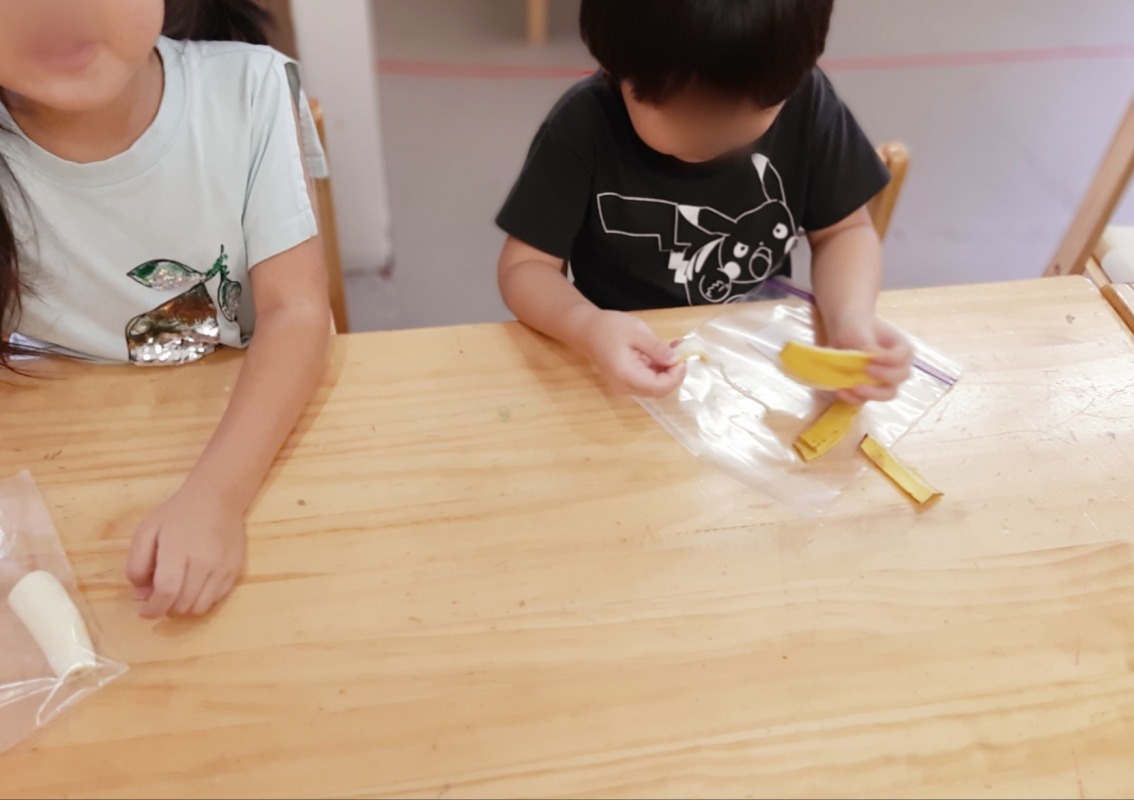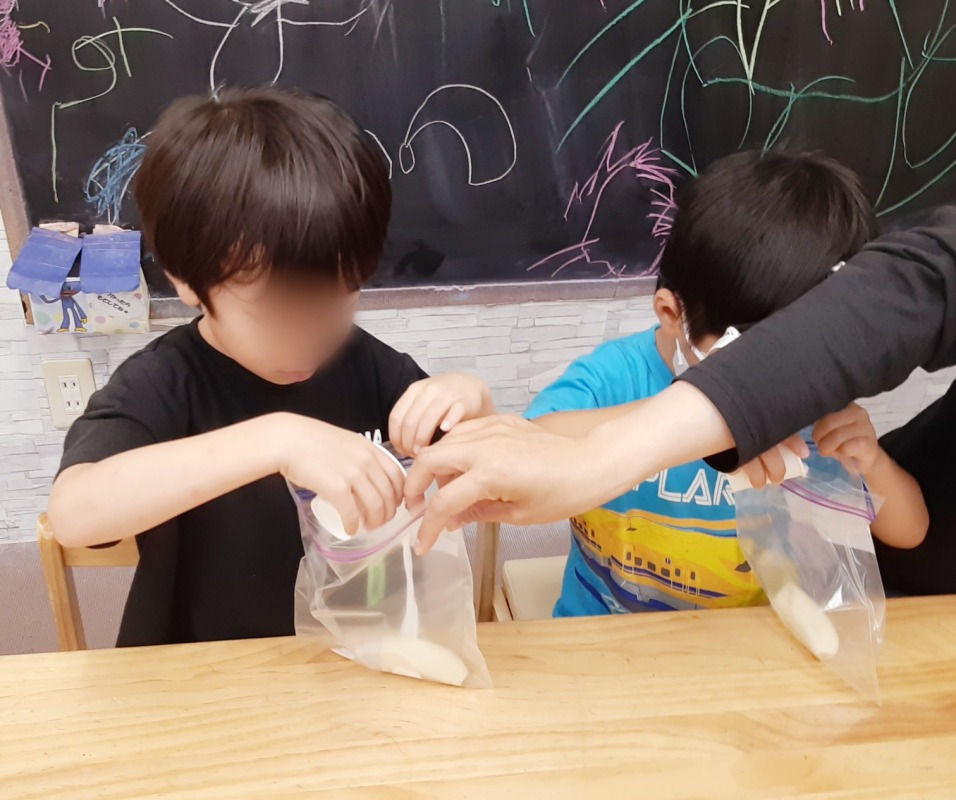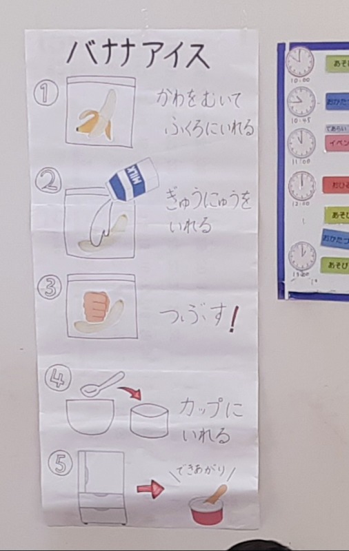 アイス作り、バナナアイスとミルクアイスの2種類を作りました。