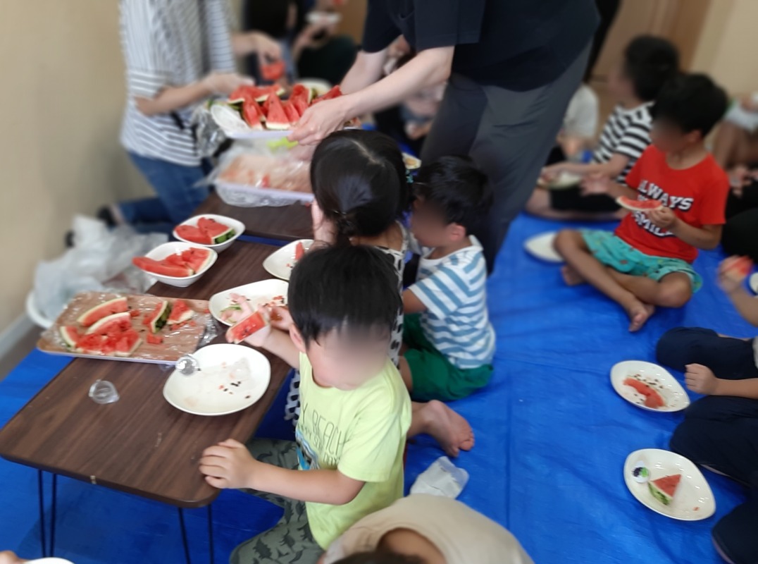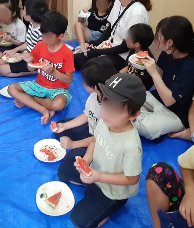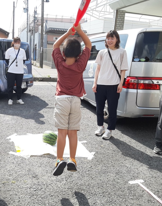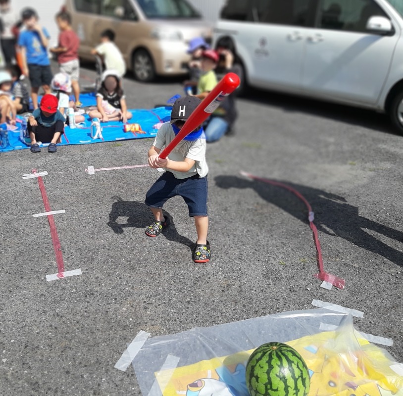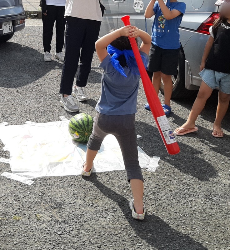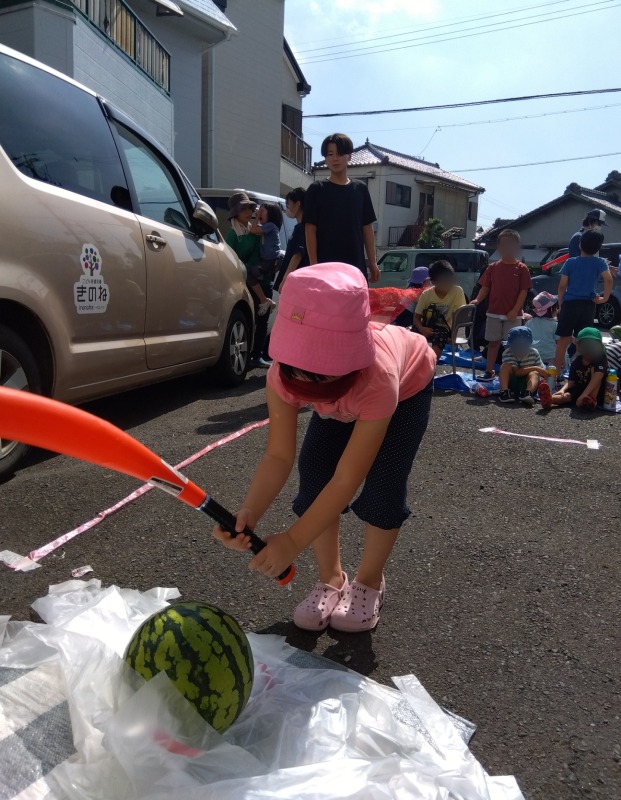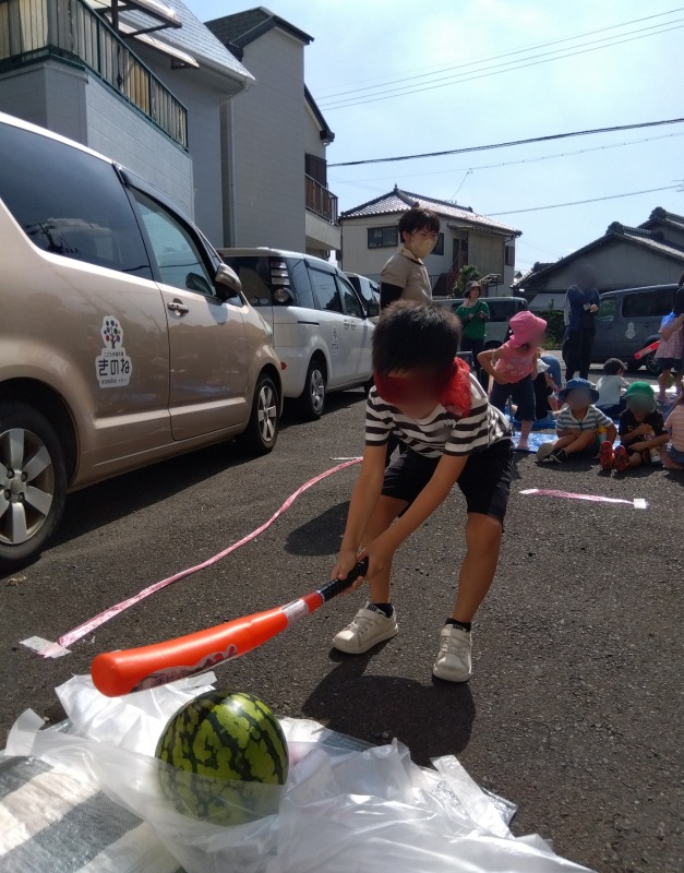 2023.8.22 きのね ironoha スイカ割り 日々のこと 毎年恒例、きのねとironoha合同のスイカ割りの様子です。かなり気合いを入れて挑んだ子どもたち!残念ながら割れず…最後はスタッフが挑みます!!キレイに割れました!割れたスイカはみんなで美味しくいただきました!とっても暑かったけど、その分スイカの味は格別でした。来年は絶対自分が割るぞ~と意気込む子どもたちです。