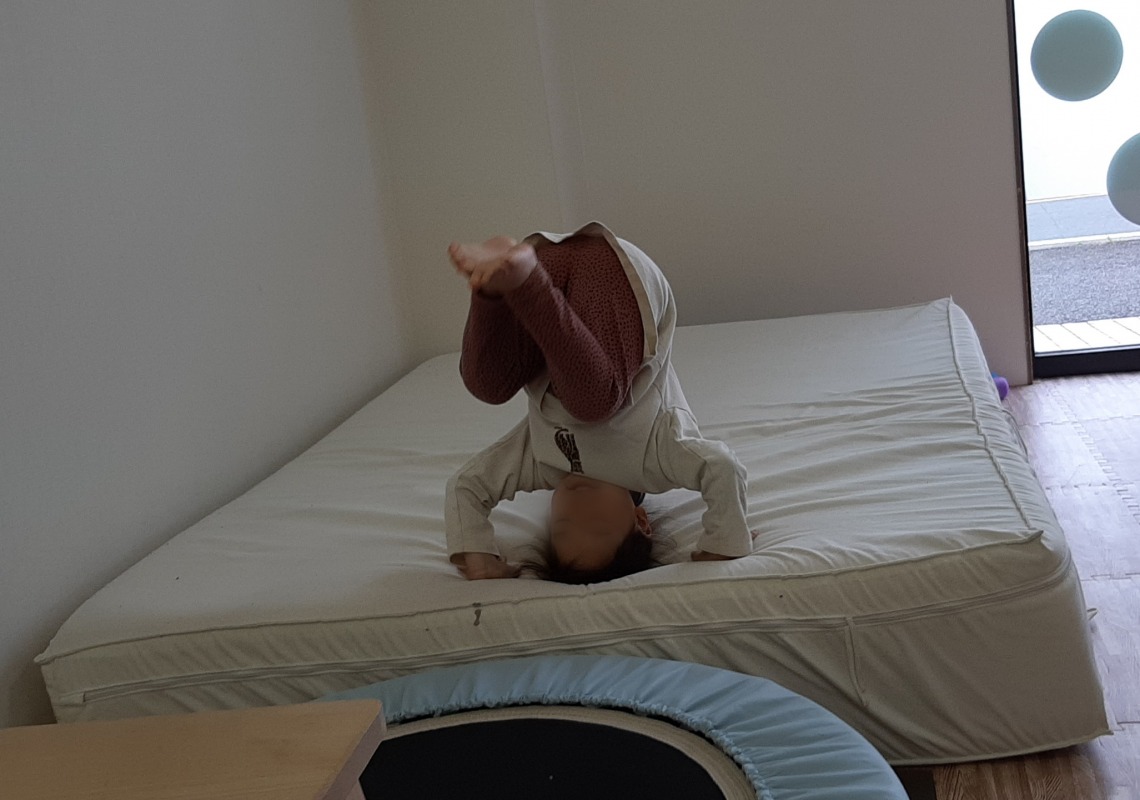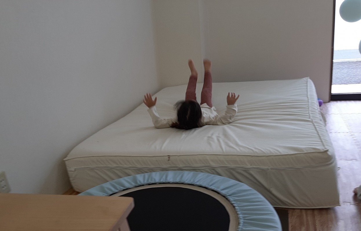 マットに飛び込んで圧刺激が入ることで、力加減や自分の動きのコントロール、痛覚鈍麻の改善に役立ちます。