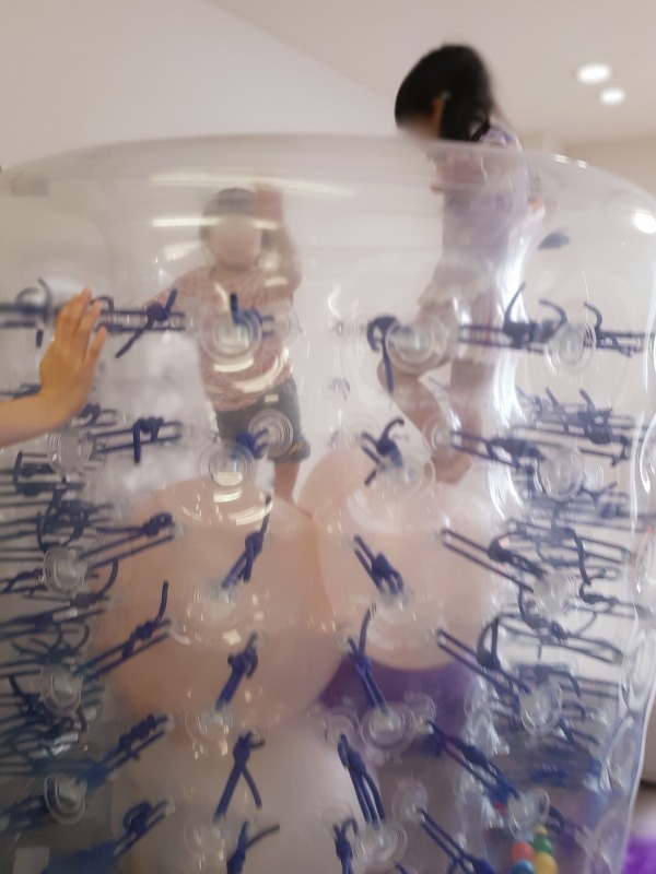 今まで登るのは怖くて挑戦できませんでしたが、中にいる友だちと一緒にあそびたくて、がんばって登りました!