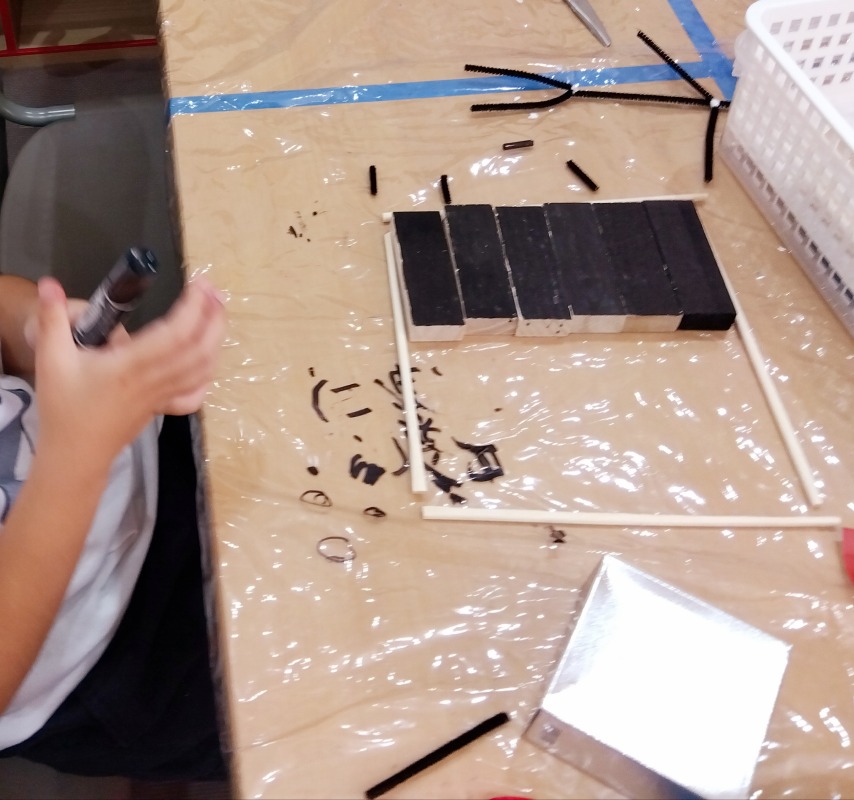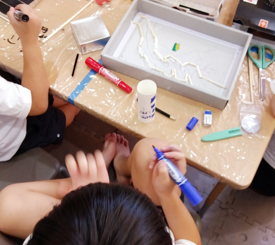 自分で選んだ材料のからインスピレーションを得て、自分の発想で作っていく子どもたち。