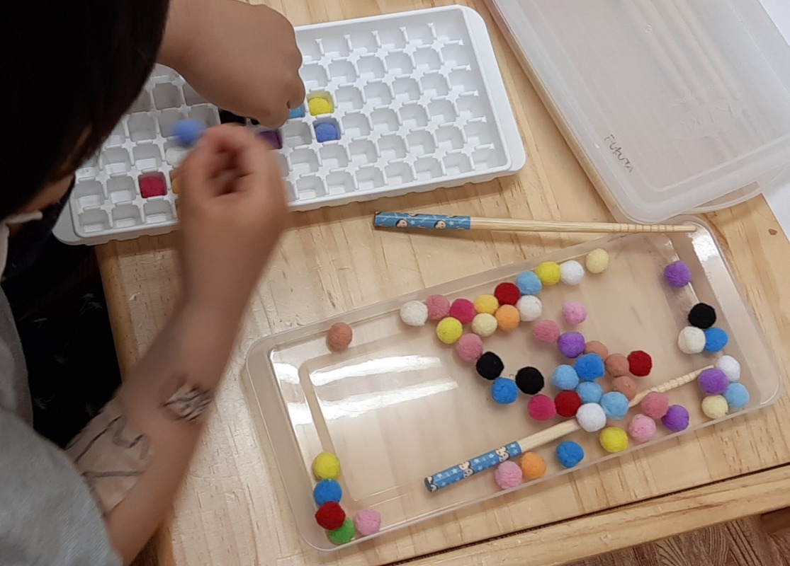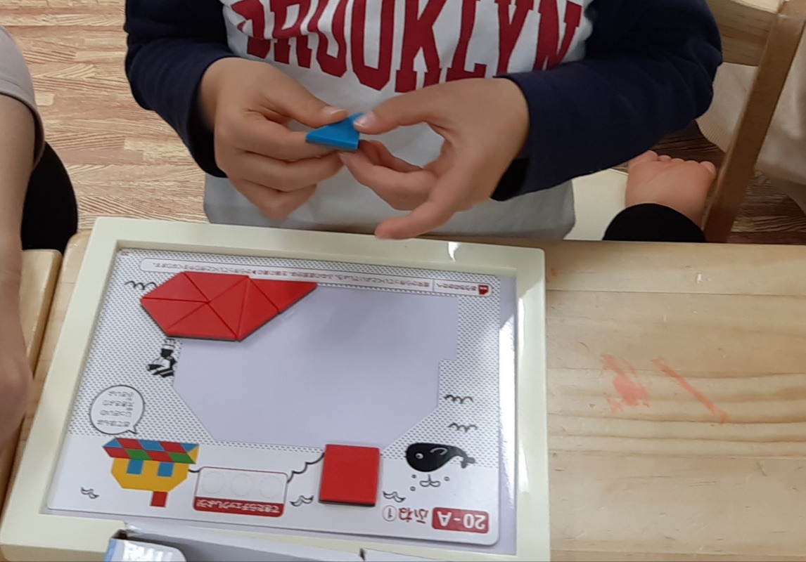 おやつの後の、座って静かにあそぶ時間。