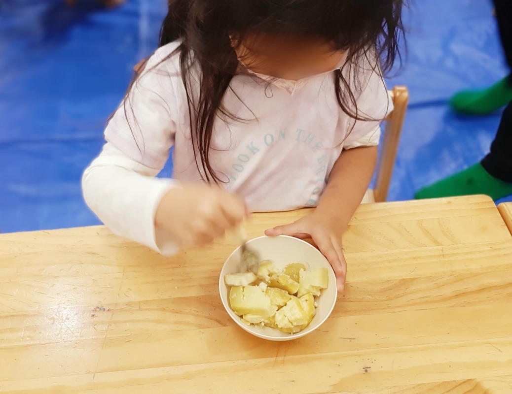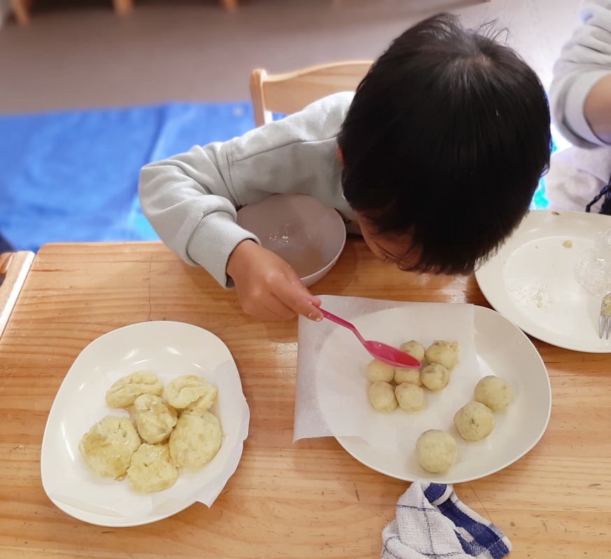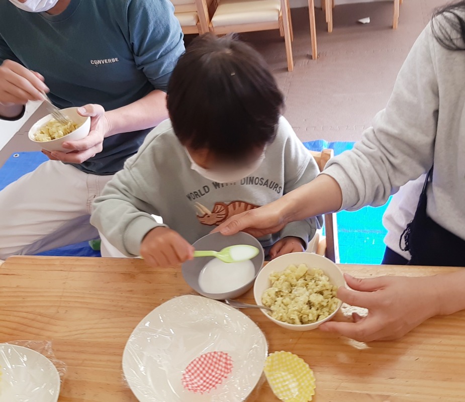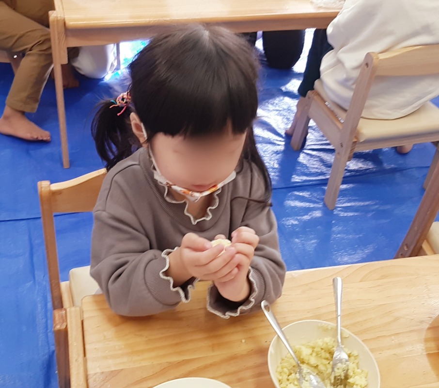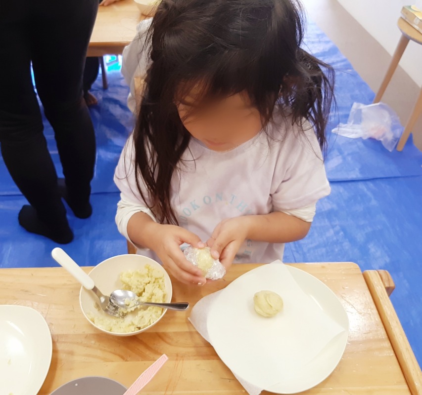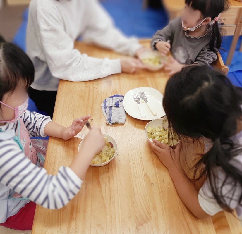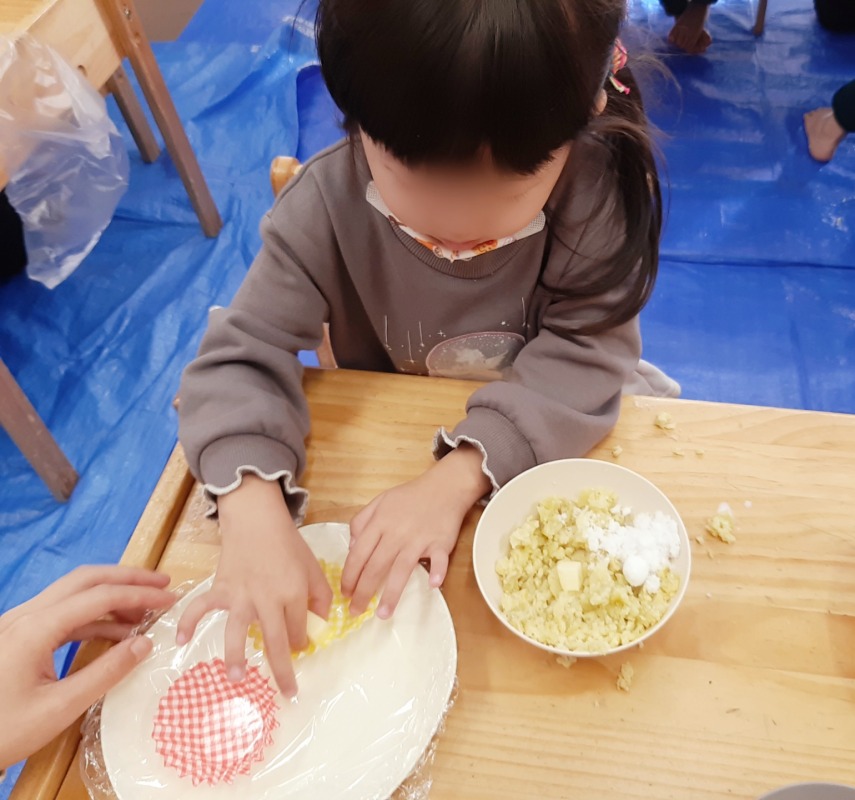 畑で収穫したサツマイモを使って、スイートポテトづくりをしました。